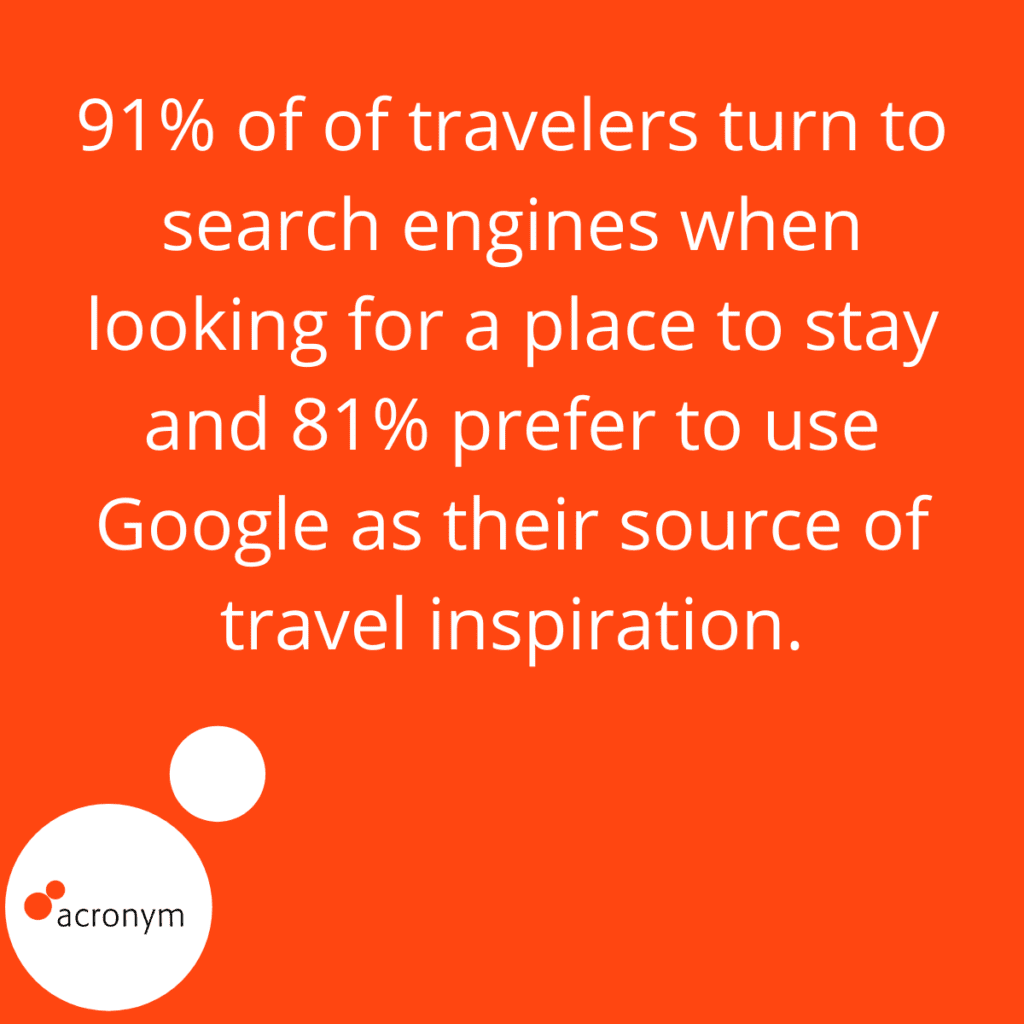 These Travelers will spend time researching all aspects of their vacation, sometimes even months in advance. 91% of travelers turn to search engines when looking for a place to stay with the majority (81%) preferring to use Google as their most common source of travel inspiration. Hotel Brands can’t rely on Travel Websites, Social Media and OTAs to be their Brand Concierge as they wouldn’t rely on just anyone to be the concierge in their hotel.