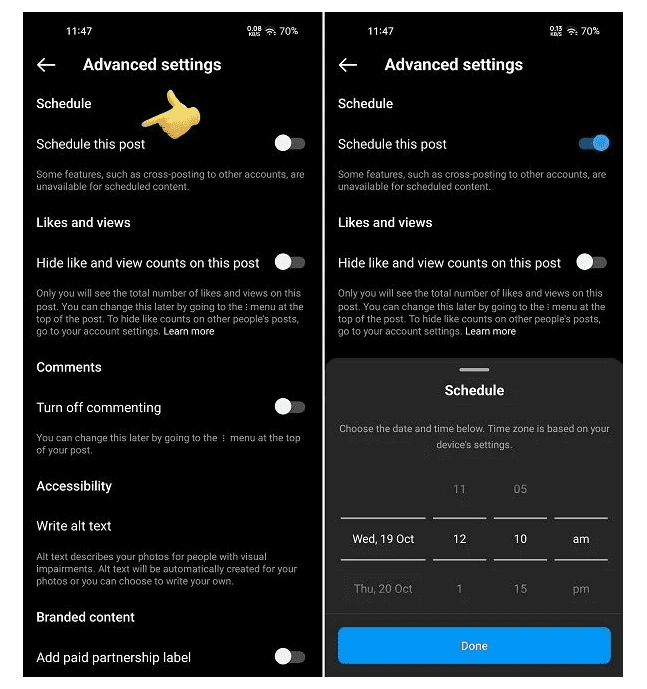 - Tap ‘Schedule this post’